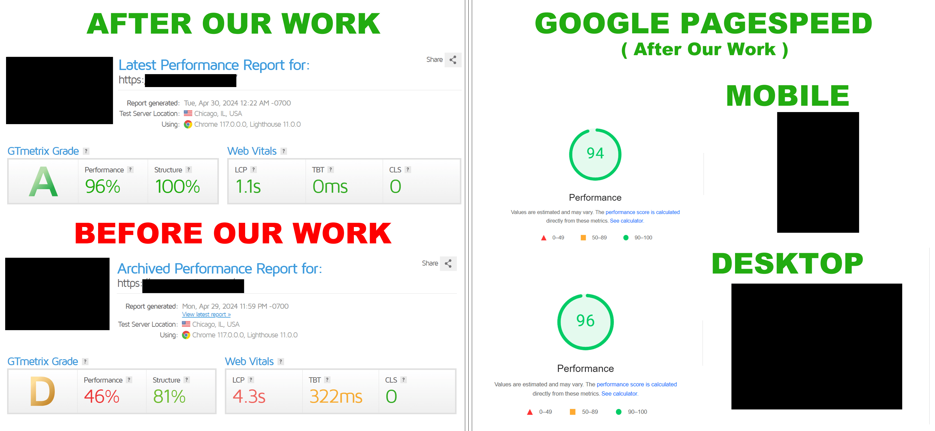 We'll speed up your site with latest Google Pagespeed and GTMetrix guidelines with the same Design Layout and Functionality.